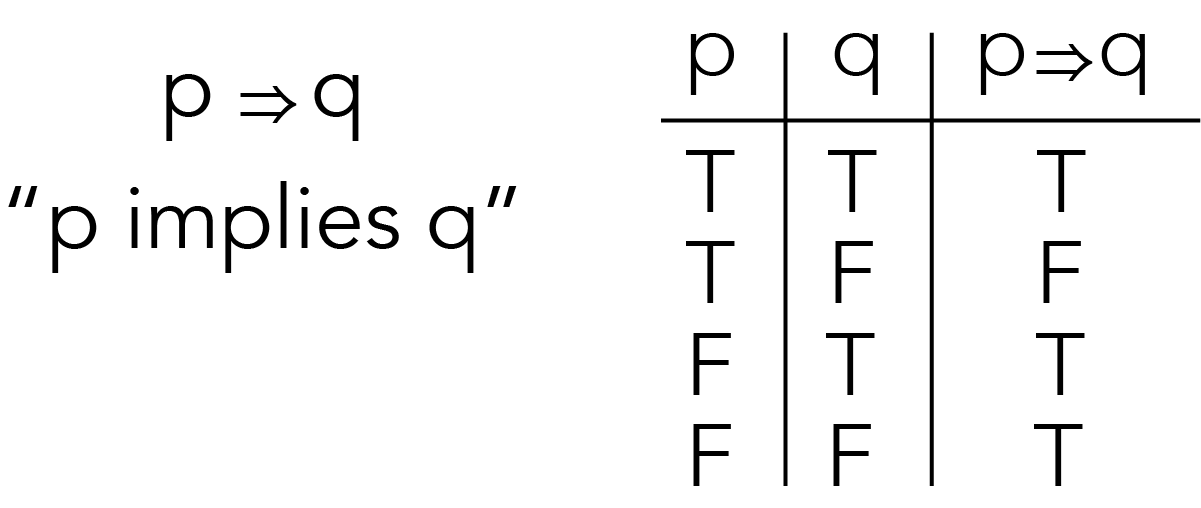 In case a refresher is in order, the above table indicates the standard truth value of a conditional statement based on the truth values of its antecedent and consequent parts. So, for a conditional statement such as “If it’s snowing then I’m wearing my winter coat”, the variable p stands for “it’s snowing” while the variable q stands for “I’m wearing my winter coat”. Clearly the statement is true if both p and q are true. And, clearly the statement is false if p is true and q is false. Yet, if p is false (because it’s not snowing) then the statement is considered true, whether the consequent is true or not. In other words, the statement “If it’s snowing then I’m wearing my winter coat” is assumed to be true if it’s not snowing, regardless of whether or not I’m wearing my winter coat.